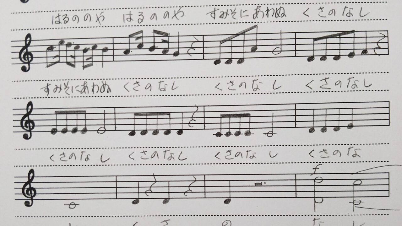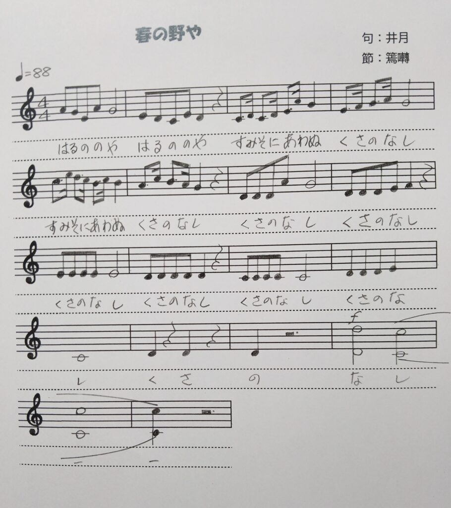◇Once I started picking, I got so engrossed that I even crawled on the ground to pick some things. ◇I tried to express that joyful feeling in measures 3 through 6. ◇From measure 7 onwards, I wondered what would happen if I made vinegared miso with all the harvested ingredients, just as Seigetsu insisted (= there is no weed that doesn’t go well with vinegared miso), and I wanted to taste it to my heart’s content. And that’s how I ended up with this sticky melody…